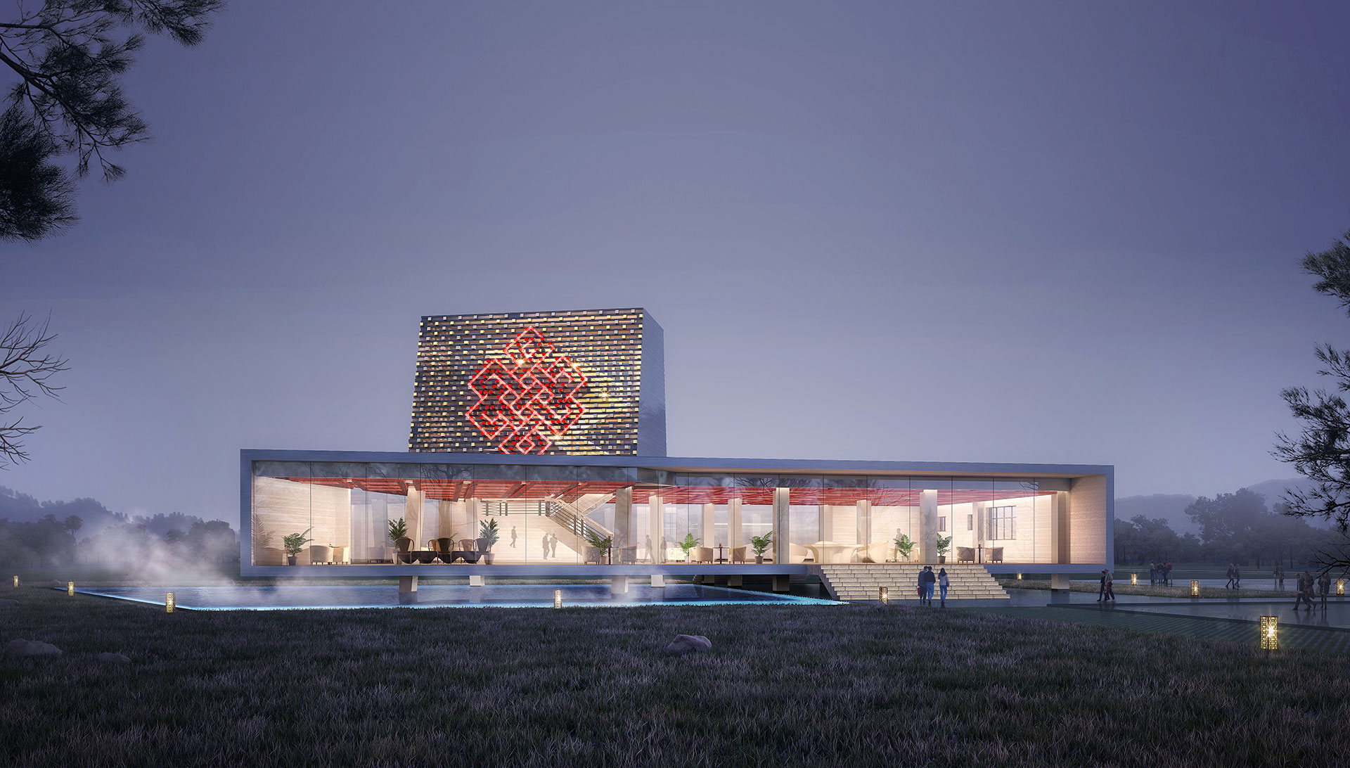 在游客中心的設計中,希望展現卡嘎溫泉中藏藥與溫泉相結合神奇,除了將多余的地熱溫泉水引入景觀中,建筑表皮設計更是希望表達出藏藥藥格的意向,給游客留下健康、養身、休閑的既定印象。