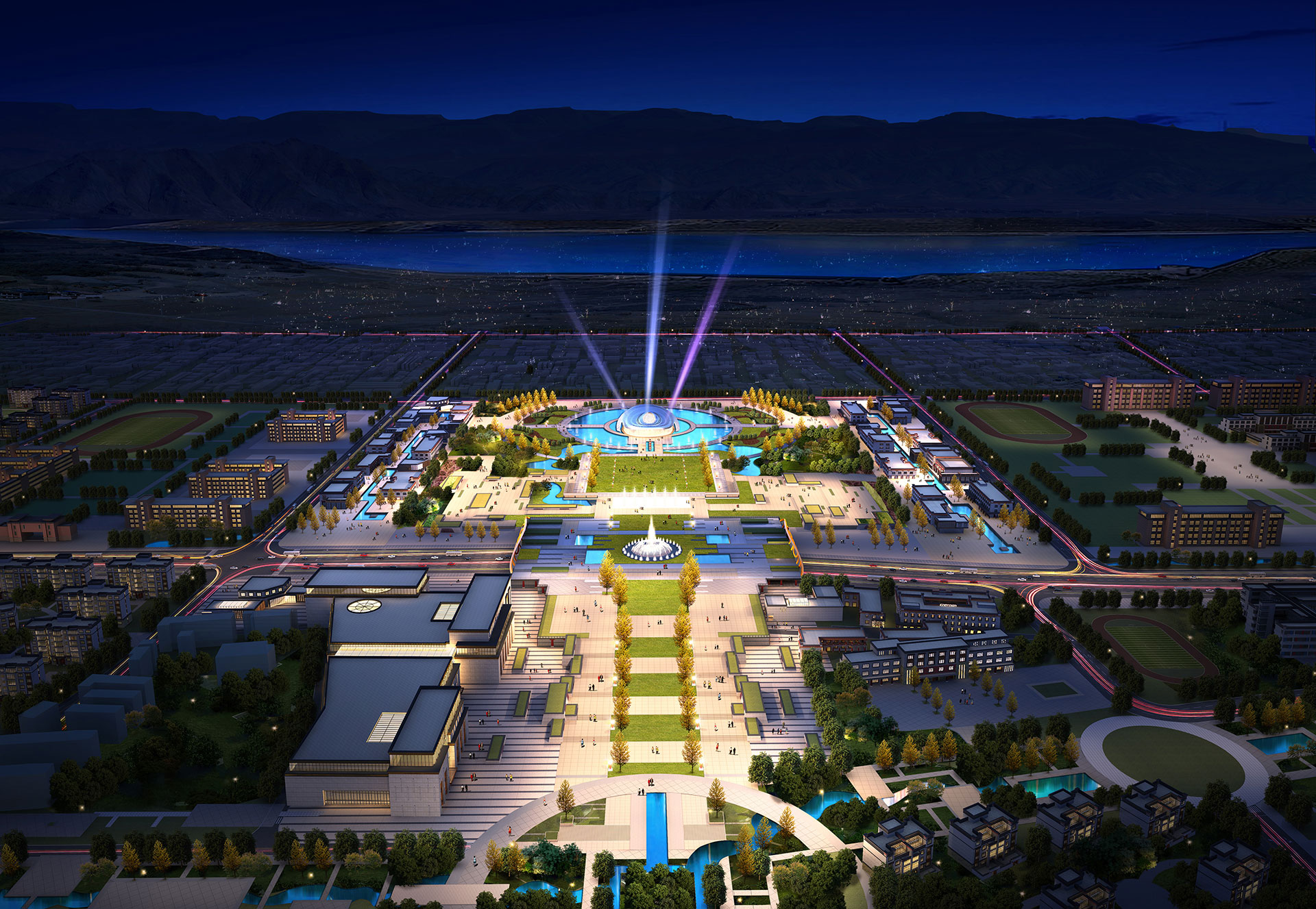 水,是萬物之源,是天地之始,是自然最為珍貴的饋贈。世世代代的藏族人民對水有著天生的崇拜,認(rèn)為湖泊、江河都是神靈化身,因此,他們多稱湖為措,意為“天湖”、“圣湖”日喀則地區(qū)自然資源豐富,眾多湖泊好像一顆顆高原明珠落在日喀則這一純潔的玉盤之上,不禁讓人想起詩句“大珠小珠落玉盤”。 帶著這份對自然的崇敬,我們將項(xiàng)目用地化作玉碗,這玉碗中盛滿了星羅棋布的似明珠一樣的水系、綠地、廣場。并且用日喀則地區(qū)四大湖泊命名場地內(nèi)四個居住區(qū)組團(tuán),具有美好的意義。