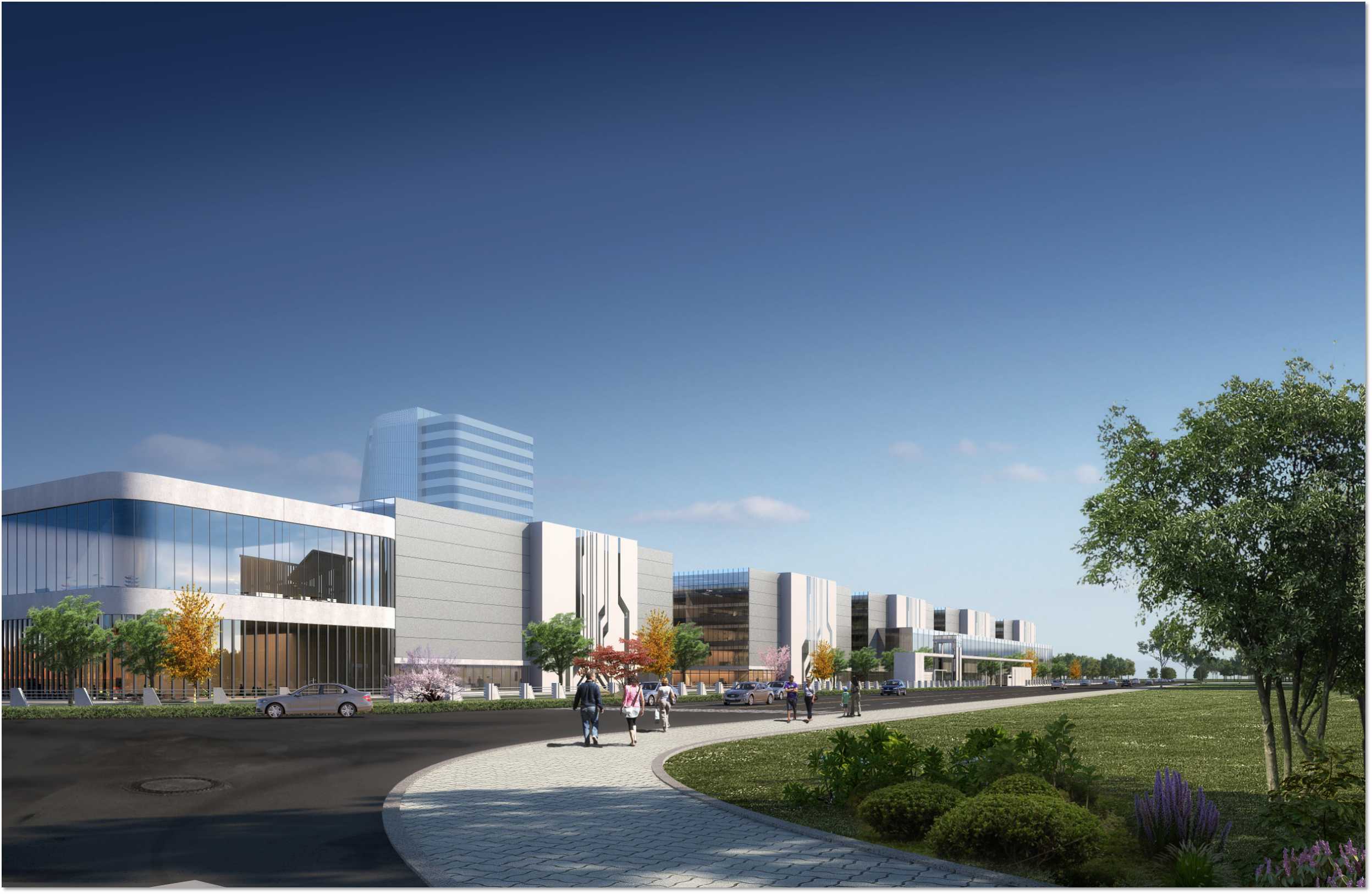 十字軸線系統(tǒng)構建園林式廠區(qū),引水入園,攬景入勝。生態(tài)鏈接橋跨越綠帶連接主要功能,以人為本,生態(tài)打頭。