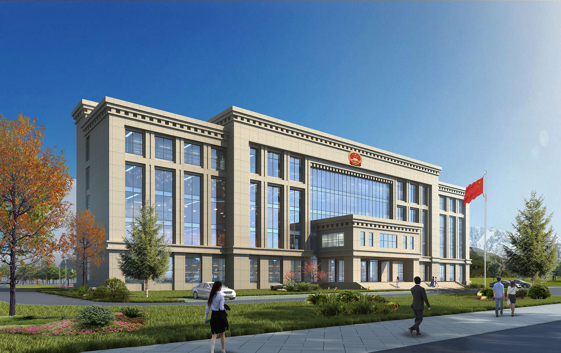 立面設計以石材與玻璃交織組成,風格簡約而富有藏式風情,既體現了對傳統文化的尊重,也充分展現現代建筑的實用與簡潔。